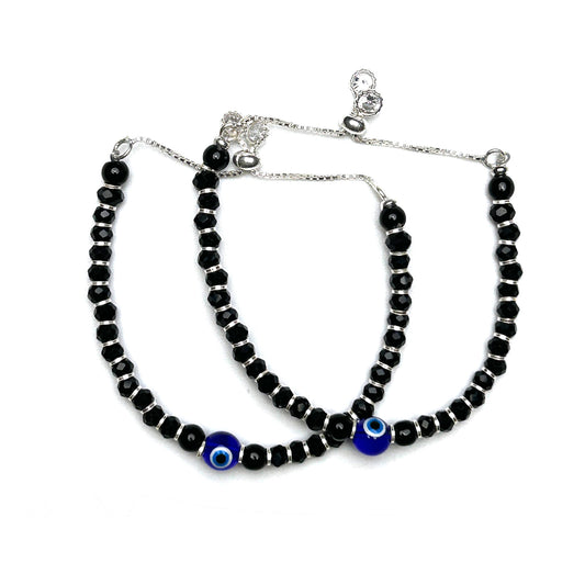 Evil Eye Black Beads 925 Sterling Silver Anklets | Nazariya