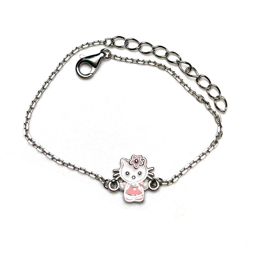 Pink Blossom Kitty 925 Sterling Silver Kids Bracelet