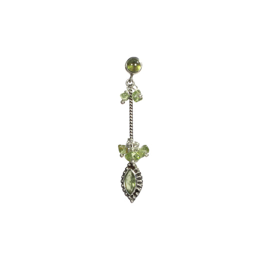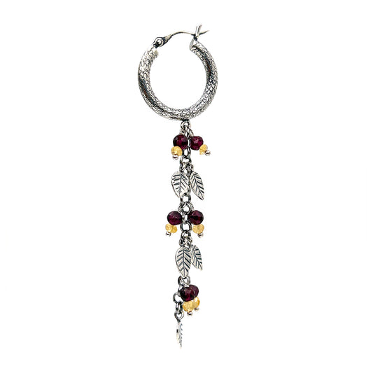 Silver Oxidised Leaf Stone Drop Hoop Earring