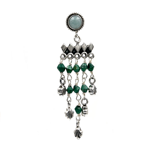 Silver Oxidised Green Flower Jhumki Earring