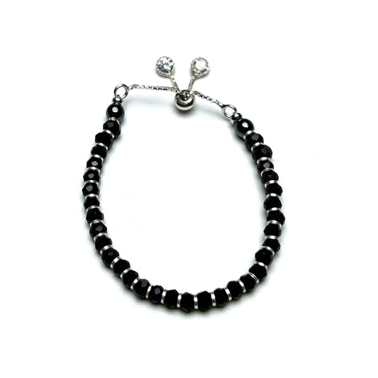 Black Beads 925 Sterling Silver Kids Adjustable Bracelet | Nazariya