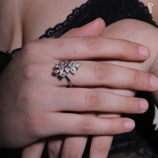 Red Leaf Butterfly Spin Silver Ring