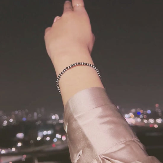 Black Beads 925 Sterling Silver Adjustable Bracelet | Nazariya