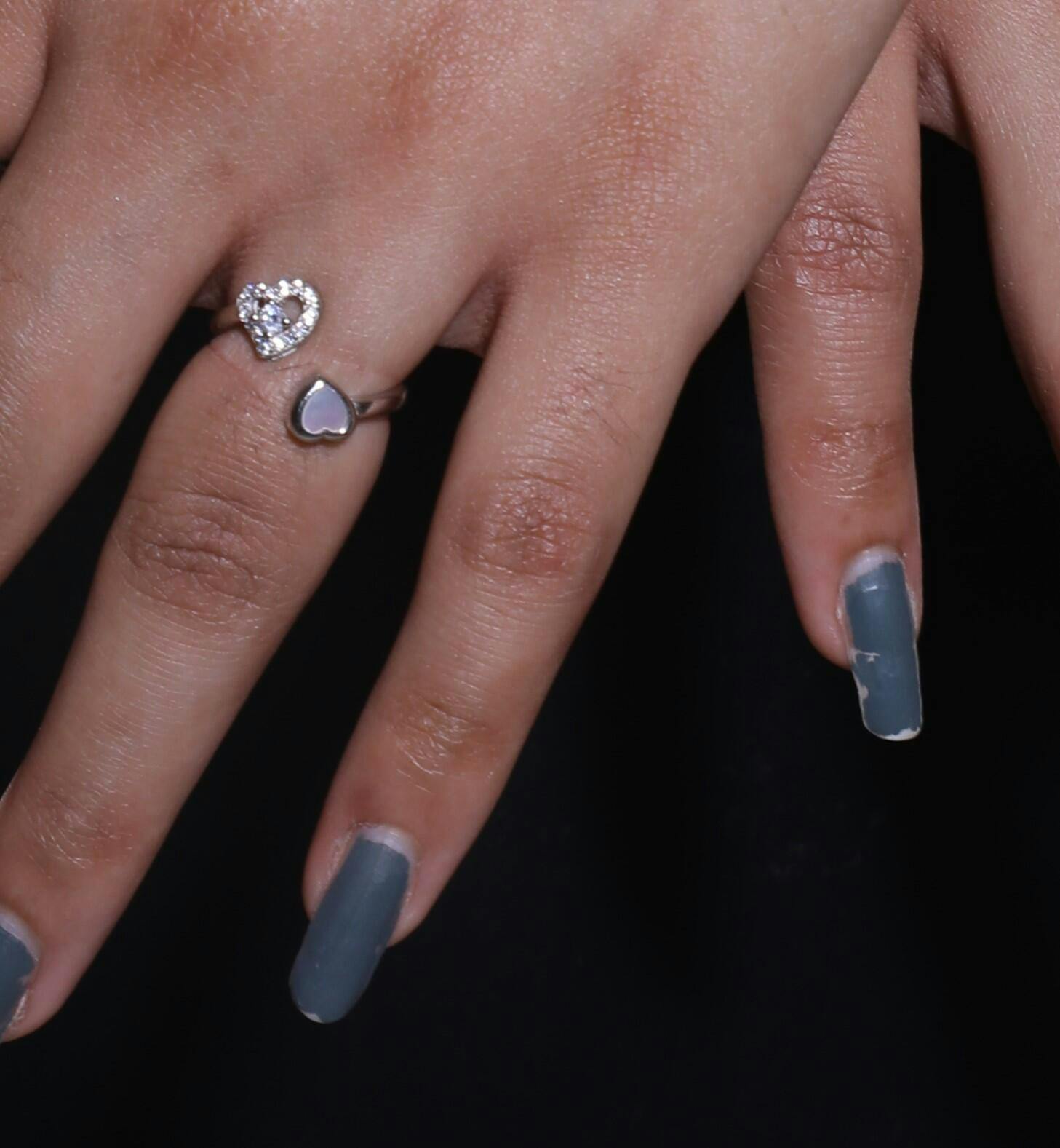The Silver Heart Mop Ring has an open-end design with two Heart coming Together
