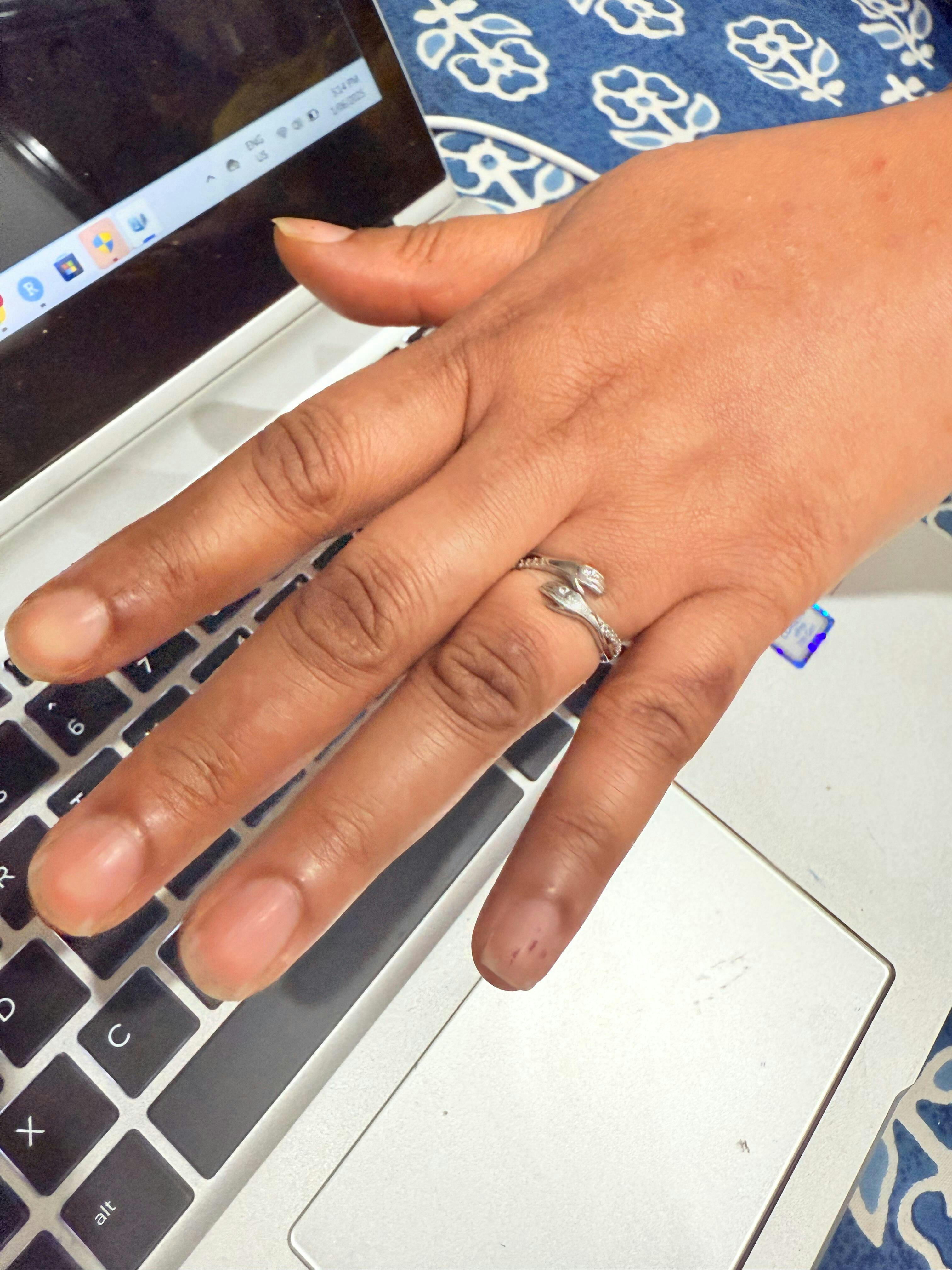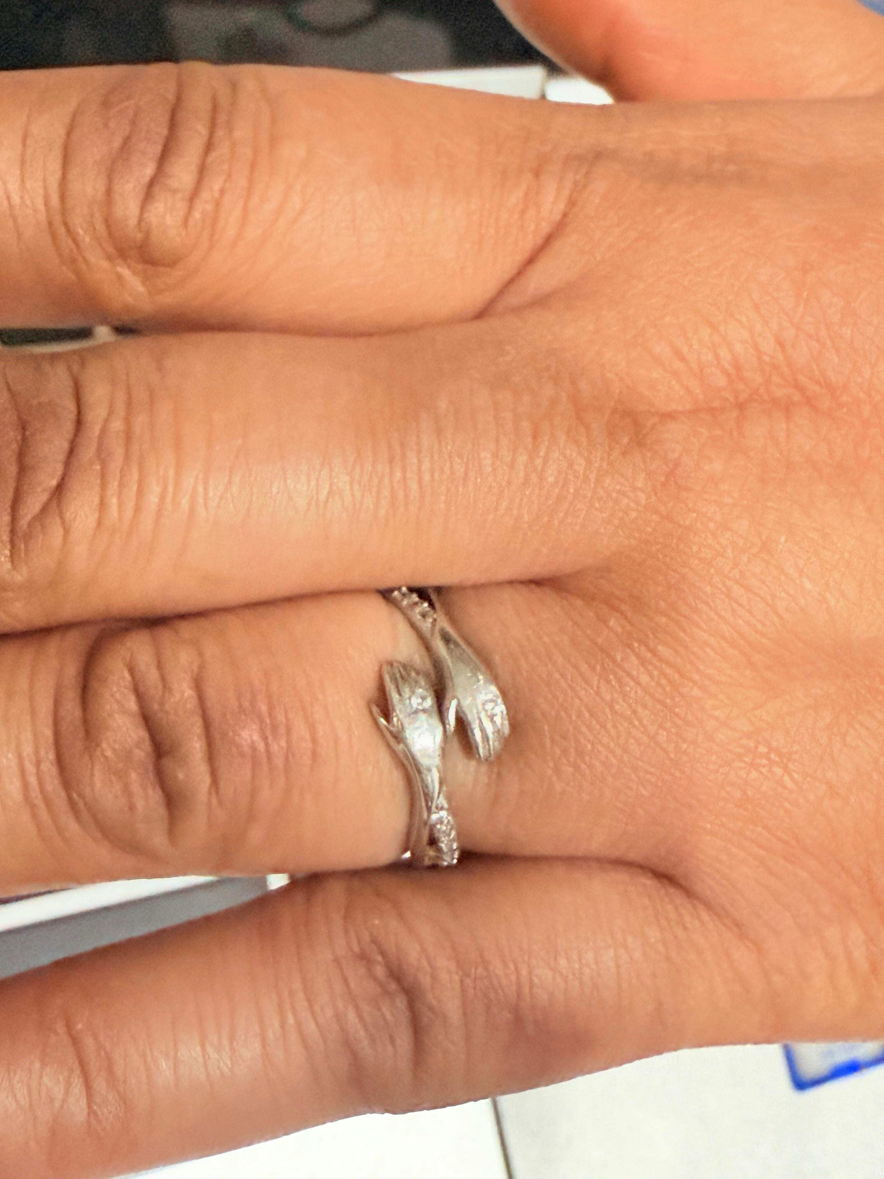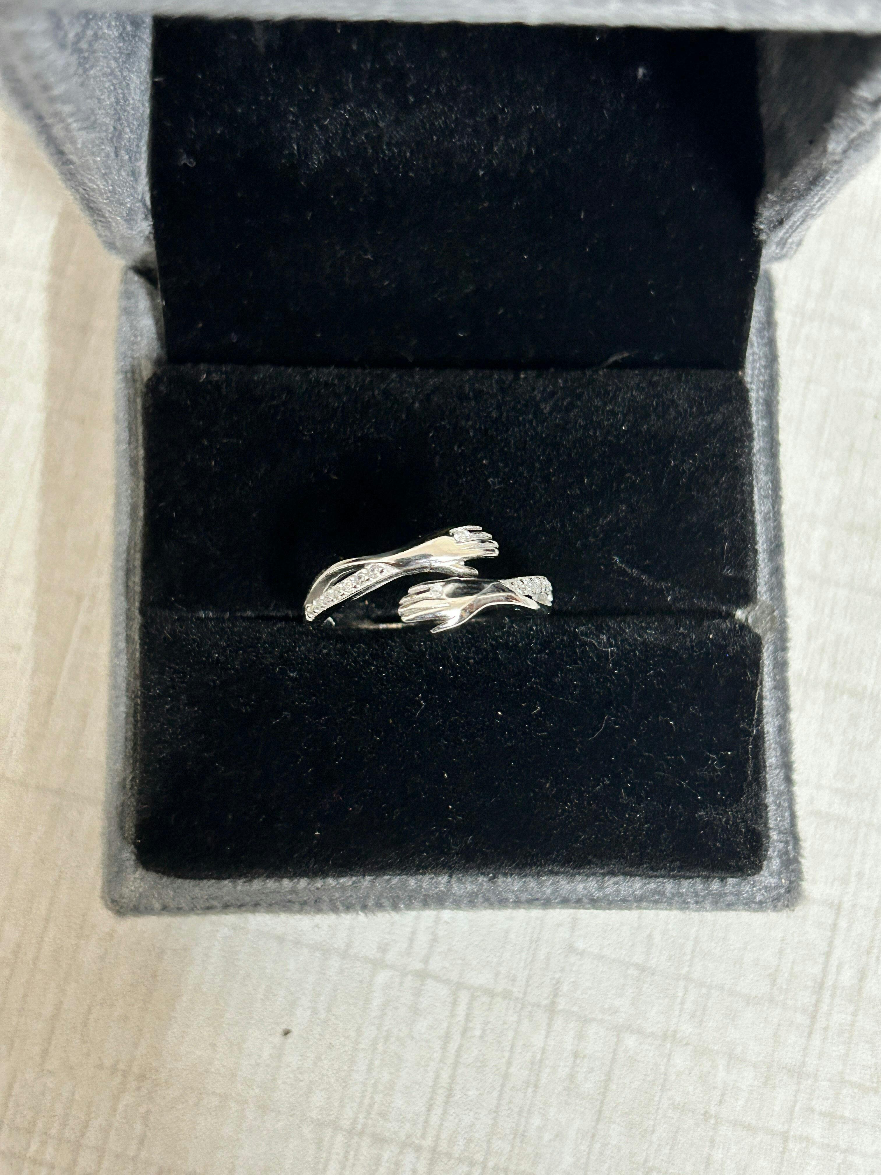 The Silver Hug Ring has an open-end design with two arms coming together to form a hug.
